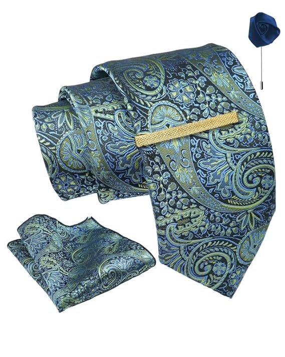 Axlon Tie for Men – Micro Silk Neck Ties Set with Cufflinks Flower Pin, Pocket Square & Black Gift Box, Combo Necktie Sets for Office Wear, Formal Suits & Weddings (0, AXPL)