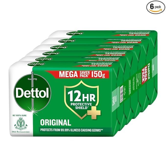 Be the first to review “Dettol Original Bathing Soap Bar with 12hr Germ protection (900gm) | Kills 99.99% Germs, 150g (Pack of 6)”