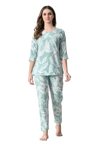 - Relax in style and comfort with the Ichaa women’s rayon printed top and pyjama night suit set
