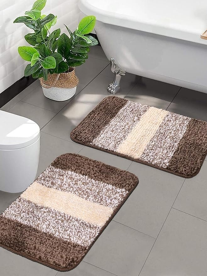 - Premium Microfiber Construction: Made with high-quality microfiber fabric, these bath mats provide an ultra-soft feel underfoot, ensuring comfort and luxury after every shower or bath.