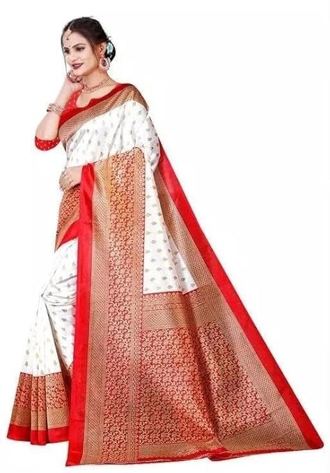 SkyCraft X Banarasi Art Silk White Saree With Blouse White