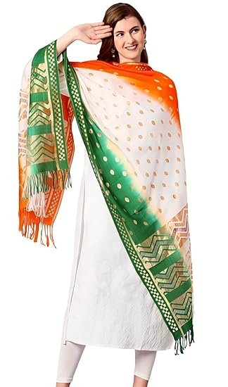 • 👗 Comfortable & Lightweight Fabric – Soft, breathable material suitable for all-day wear, perfect for both traditional and fusion outfits. 🎉 Ideal for National Celebrations – A must-have accessory for Independence Day, Republic Day, school events, cultural functions, and rallies.